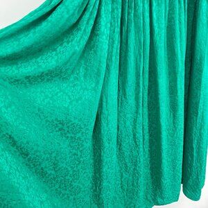 Vtg Garfinckels Green Silk Dress 80s Womens 6 Jacquard Print Puff Sleeve Pleated