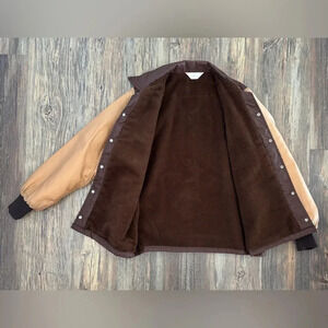 Vtg Gem Sportswear Jacket Men’s Lg Brown Tan “Journey” Fleece Lined Snap Buttons