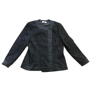 Vtg Gene Roye Womens Lace Evening Formal Jacket Blazer Buttons Black US 8 S Med