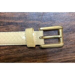 Elevate your style with this vintage, genuine snake skin leather skinny belt. In a chic cream shade, it fits women's sizes 30" to 34.5". Made in Taiwan.