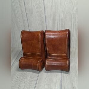 Vtg Genuine Tooled Leather Scroll Bookends Florence Italy MCM Library Office