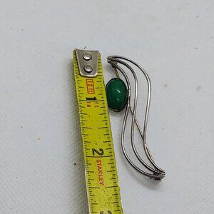 Vintage Art Deco brooch crafted in 925 sterling silver with a green jade jadeite stone. Unique swirl design, handmade and one-of-a-kind, perfect for collectors and jewelry enthusiasts.