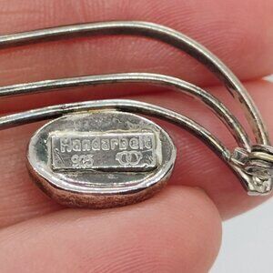 Vtg German Art Deco Brooch 925 Sterling Silver Handarbeit w/Green Jade Jadeite
