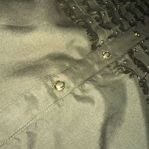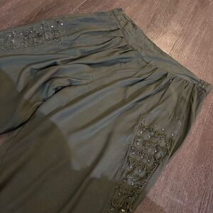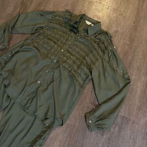 Vtg Giallo Napol Women’s Green Rayon Outfit Set Fringe Pearl Studs Relaxed Fit M