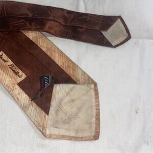 Vtg Gildners Necktie Silk Hand Printed Brown Pheasant Changeant Weave 53 x 4