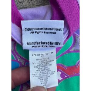 The product is a vintage Nickelodeon "Girl Ninja Turtle Tank" in size 4T. It features a purple lilac color with a graphic print of characters from the Teenage Mutant Ninja Turtles franchise. The tank has a sleeveless design, a scoop neck, and a pullover closure. Made of a blend of polyester and rayon, this shirt is perfect for various activities such as walking, daily activities, playing, and outdoor adventures. Whether for casual wear or themed events, this tank offers both style and comfort for young ninja fans.