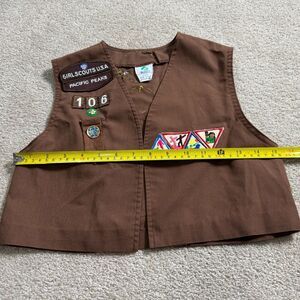 Vtg. Girl Scouts Brownie Vest Girls Medium (10-12) Brown With Patches Sleeveless