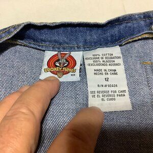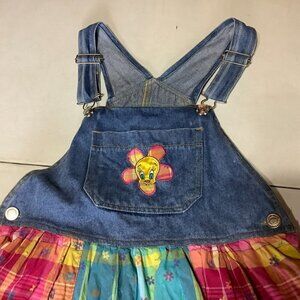 Vtg Girl's Dress Jumper Looney Tunes Tweety Bird Denim Jean Plaid Floral Sz 12
