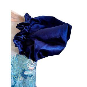 • Satin puff sleeves with ruffle detailing