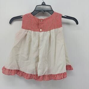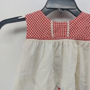 Vtg Girls Red White Gingham Baby Dress Smocked Sleeveless