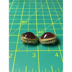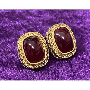 Vtg Givenchy Red Lucite Gripox Clip Earrings Translucent Cabochons Gold Tone 80s