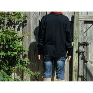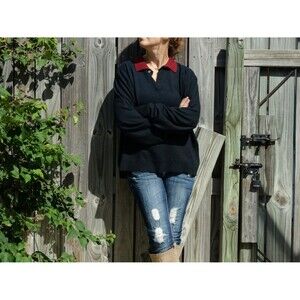 Vtg Glasgow Creation Preppy Sweater Navy Red Collar Slouchy Pullover M 60s 70s