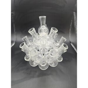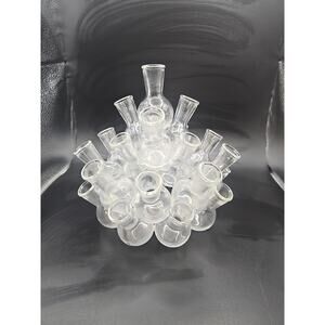 This vintage glass beaker plant propagation station test tube vase set includes 25 tubes, each measuring 8 inches in length and height. The clear glass tubes have a vintage/retro style, perfect for showcasing houseplants and flowers in any room. Made in the United States by the Horticultural Institute of Southern California, this set is a unique and elegant addition to your home décor, requiring no additional parts for setup. Simply clean the tubes with warm water to maintain their clarity and enjoy the beauty of your plant roots growing in this stylish propagation station.