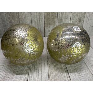 Vtg Glass Decor Silver and Golden Balls Ornamental Holiday Decor 4" DIA Set 2