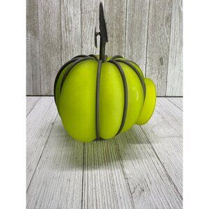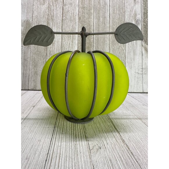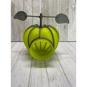 Vtg Glass Metal Green Pumpkin Tea Light Globe 6"H x 5.5"D India Halloween Decor
