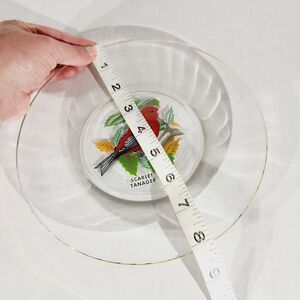 Vtg Glass Plate Painted Scarlet Tanager Bird Plate Clear Gold Trim 8" Red Nature