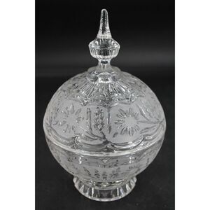 Vtg Glass/Crystal Zajecar Round Ball Shaped Etched Flower Footed Candy Dish Heav