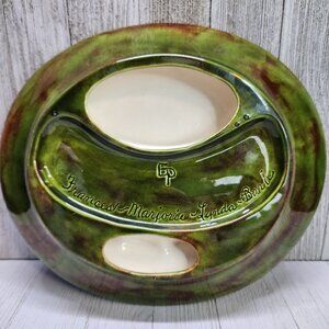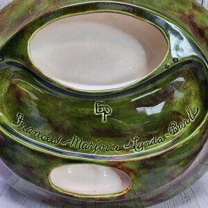 Vtg Glazed Green Two Toned Ceramic Ashtray with 11 Slots German Gothic Markings