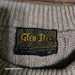 Vtg Glen Dee Shetland Wool Sweater Size M Tan Brown Preppy 80's 90's