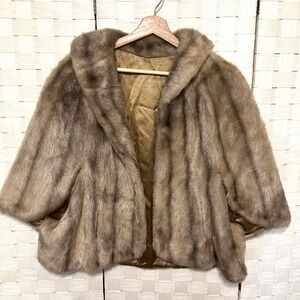 Keywords: faux fur coat, capelet jacket, movie prop coat, vintage fur coat, taupe coat, brown faux fur, retro jacket, womens coat, fur cape, Hollywood glam, faux fur shawl, vintage outerwear