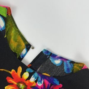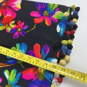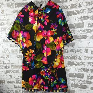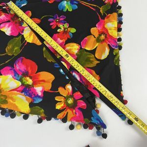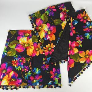 Vtg GoGo Dress Sz M Matching Shawl & Skirt Handmade Bright Flowers Pom Pom Trim