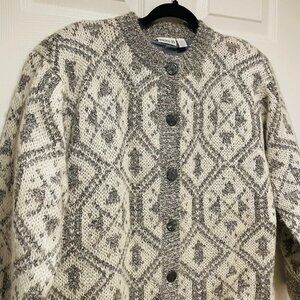 Vtg Goemetric Print Mohair Button Cardigan Women’s Size M Grandmacore Cabincore