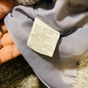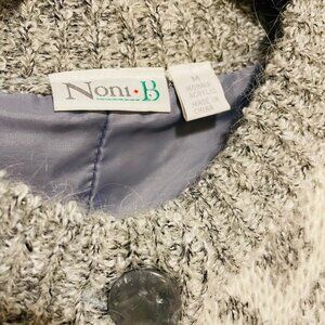 This is a Vintage Noni B Mohair Acrylic Cardigan In A Gray & White Print. It if fully lined with soft shoulder pads and features beautiful gray buttons. Women’s Size Medium.