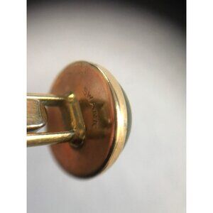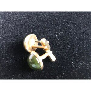 Vtg Gold Colored Cufflinks with Round Green Swirled Rhinestone by Swank