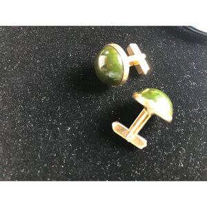 Gold Colored Cufflinks with Round Green Swirled Rhinestone by Swank