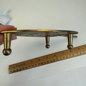 Condition: Used vintage condition. There is some obvious discoloration of the material. Some "specks" on the front of the trivet, a few smallish gouges taken out of the backside of the trivet but cannot be seen and it doesn't effect use of item. Small indent on the front from where the one foot has been attached to the underside. Overall a cool piece to add to your collection!