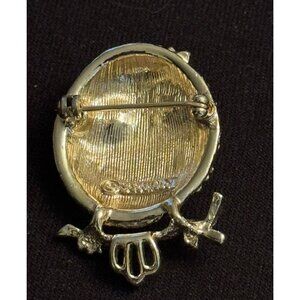 The pin is stamped with the Sarah Coventry brand and it originates from the United States. This unique brooch is perfect for anyone who loves vintage and antique jewelry. Add this beautiful piece to your collection today!