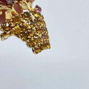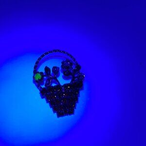 Vtg Gold Tone Rhinestone Floral Basket Brooch Pin Multicolor 1 Piece UV Reactive