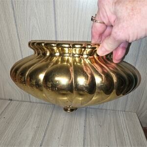 Vtg 80s Gold Tone Victorian Ribbed Wall Pocket Planter Wall Decoration MCM Hollywood Regency Farmhouse Country Retro Cottagecore Boho