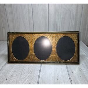 Vtg Gold Triple Picture Frame Gold Tin Oval Mat Embossed Ornate Victorian Hollywood Regency French Provincial Farmhouse Country