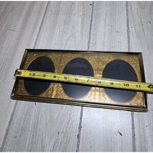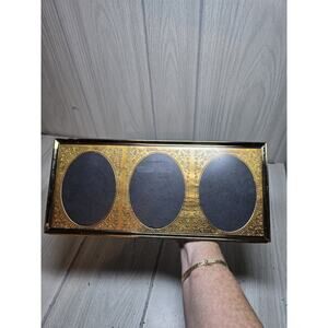 Vtg Gold Triple Picture Frame Gold Tin Oval Mat Embossed Ornate Victorian