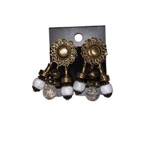Vtg Goldtoned Metal Dangles Earrings Pierced 80s 90s Jewelry, Retro Statement