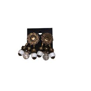 These Vtg Goldtoned Metal Dangles Earrings are a stylish retro statement piece perfect for the 80s and 90s fashion era. The teardrop shape, orange main stone color, and dangle/drop style make them a standout accessory for women. Crafted with a mix of plastic and metal materials, these vintage earrings exude a unique charm and appeal to those who appreciate retro jewelry from the past. Ideal for adding a touch of nostalgia and flair to any outfit.