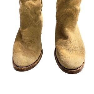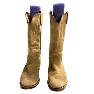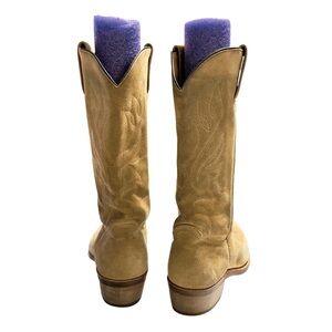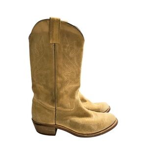 This is a great pair of natural color suede Vintage western boots, Men's size 8 EE (equivalent to a ladies size 9.5). Made in USA. Good Year oil chemigum proof They are in quite broken-in vintage condition. These are a great find and date back to the late 1970’s or early 1980’s.