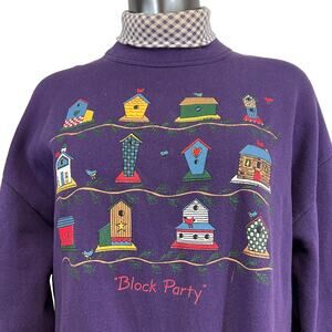 Vtg Gopher Sport Womens Mock Neck Sweatshirt Bird Houses Gardening Block Party L