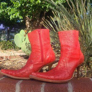 Vtg Goss Red Leather Ostrich Boots 6 Stiletto Pointed Toe Western Witchy Cowboy