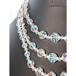 Vtg Graduated Three Strand Czech Faceted Clear & AB Crystal 13"-15.5" Necklace