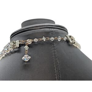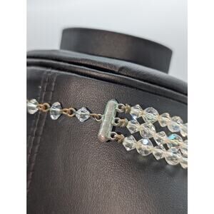 Vtg Graduated Three Strand Czech Faceted Clear & AB Crystal 13"-15.5" Necklace. Pre-owned, this necklace is in excellent condition with the only wear is on the hook and metal parts of the chain & findings.