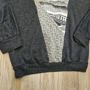 Vtg Graff Geometric Sweater Womens M Gray Beige Boho Hippie Retro Grandmacore