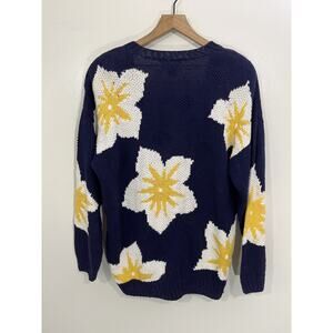 Vtg Grandpa Grandma Hand Knit Cottage Floral Cardigan Sweater S Maximalist 90s