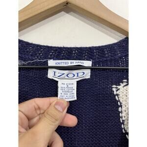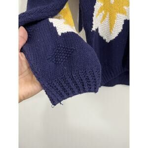 Vtg Grandpa Grandma Hand Knit Cottage Floral Cardigan Ramie Sweater S Maximalist Y2K 90s Prairie Cabincore Oversized Cozy Academia Layer Blue.