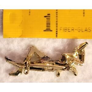 Grasshopper Pin Brooch Red Rhinestone Eye Clear Rhinestone on Knee Bend Goldtone Metal 1.5" Long. No damage.
