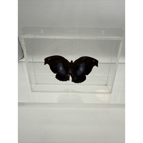 Vtg Great Blue Hookwing. Napeocles jucunda, Mounted butterfly Plexiglass Signed