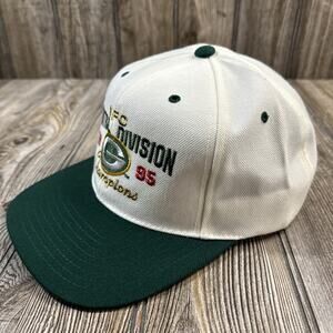 Vtg Green Bay Packers SnapBack Hat Headmasters Wool Blend 1995 Division Champs