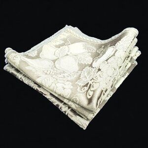 Vtg Green Cloth Napkins Jacquared Satin 16" Set Of 4 Pear Grape Ivy Fabric Olive Forest