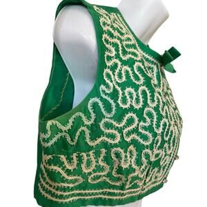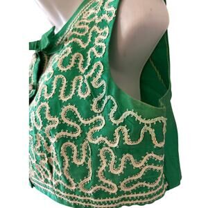 Vtg Green Crop Blouse Sleeveless Cream Embroidered Trim Homemade Sz Sm